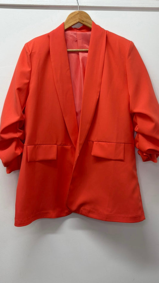 Ruched sleeve blazer - Coral