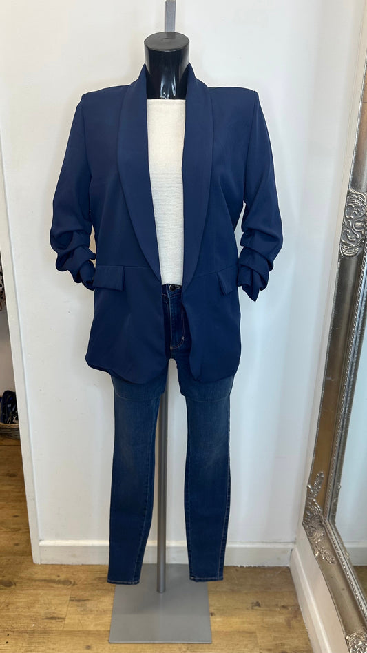 Ruched sleeve blazer - Navy