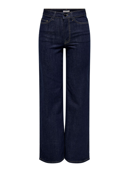 High Waisted Wide Leg Jeans - Dark Blue Denim