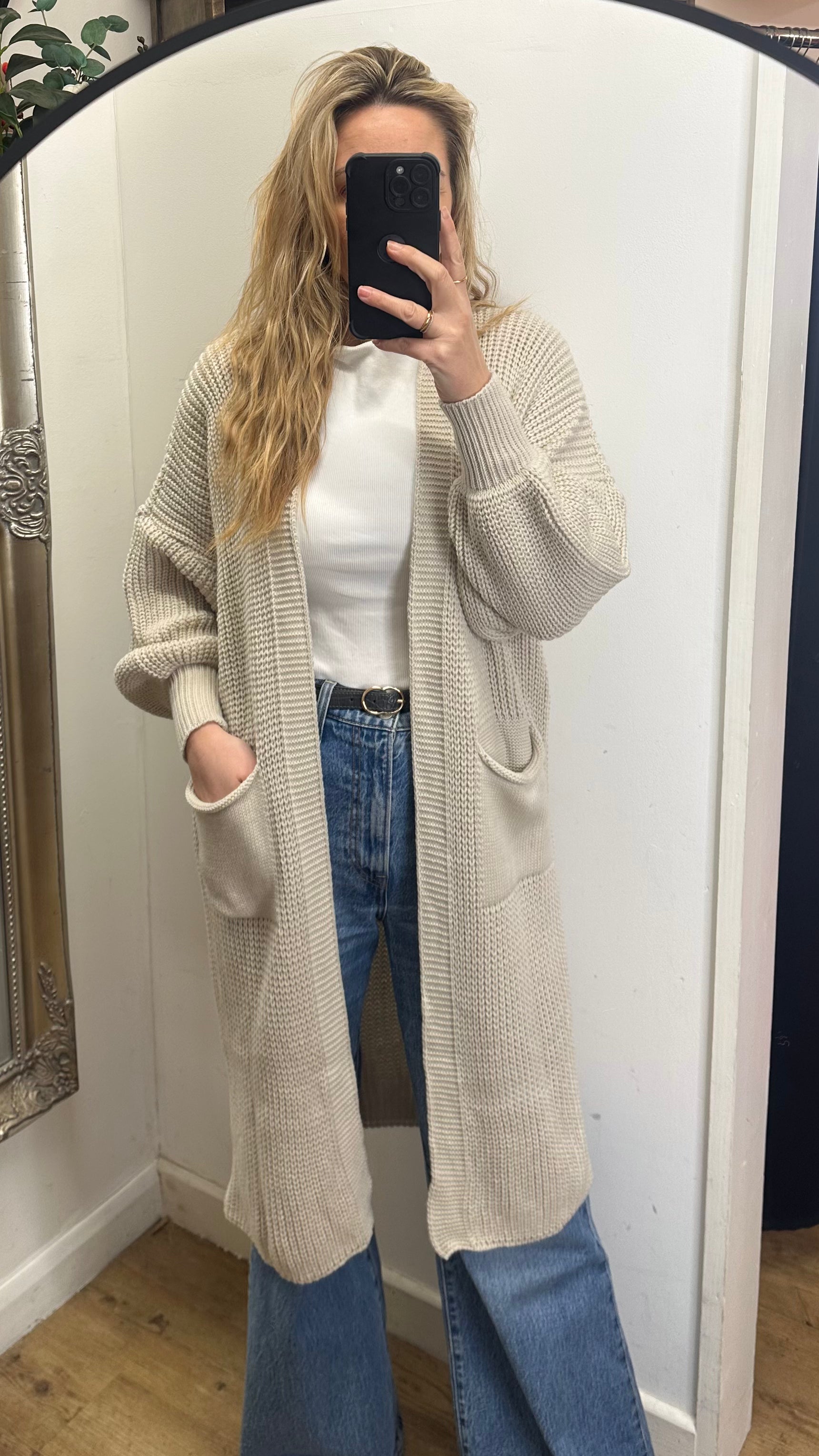 Cream Long Cardigan